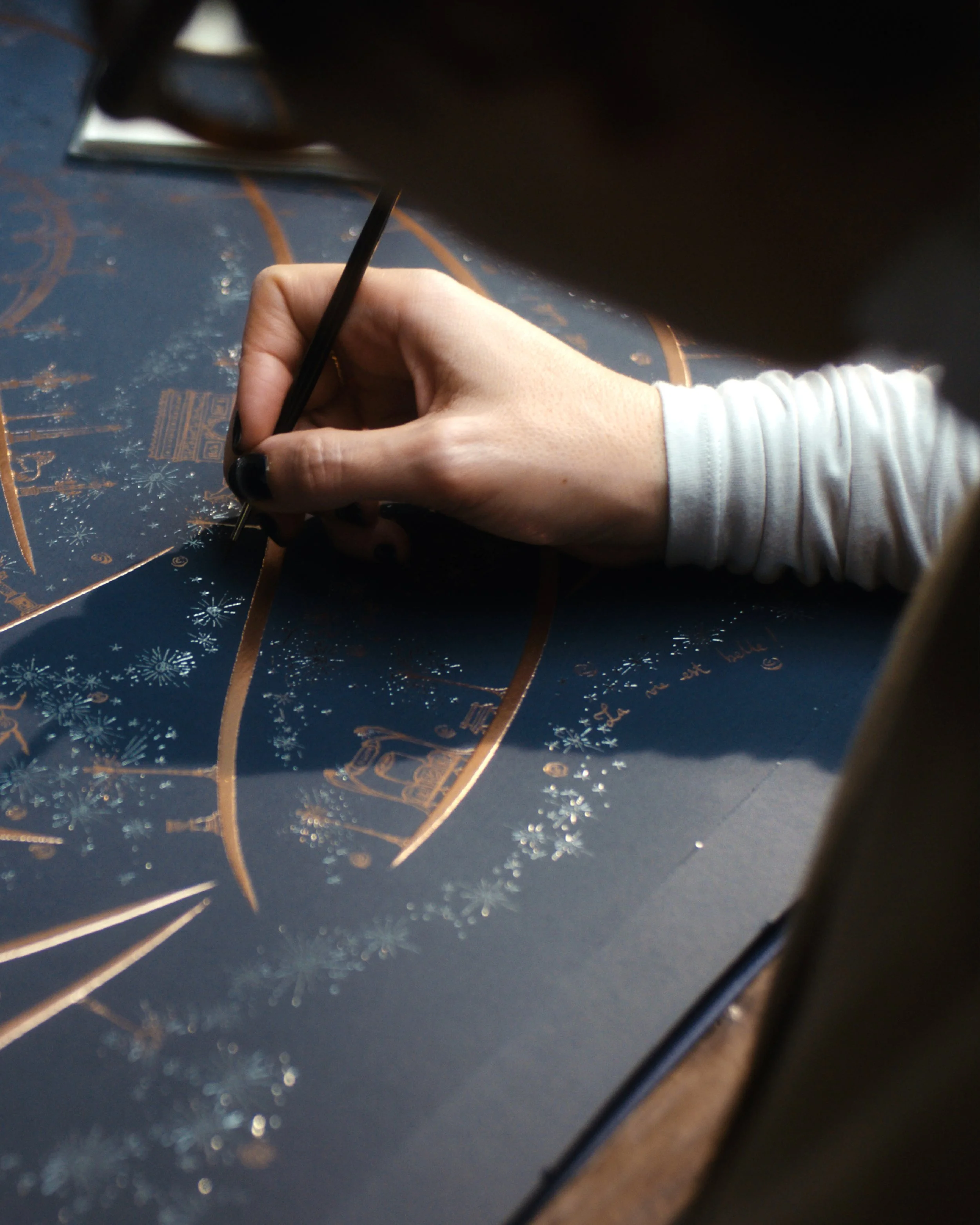 Through her journey across Paris, she shares the inspiration and creative process that brought the box to life. Her story unfolds like a dream, inviting us to wander among the stars of the magical universe she imagined and painted.